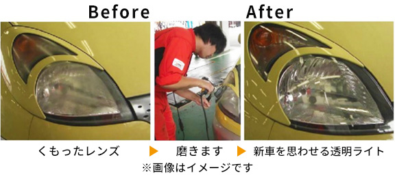 変色したヘッドライトカバーが当店の磨き技術で一発解決!